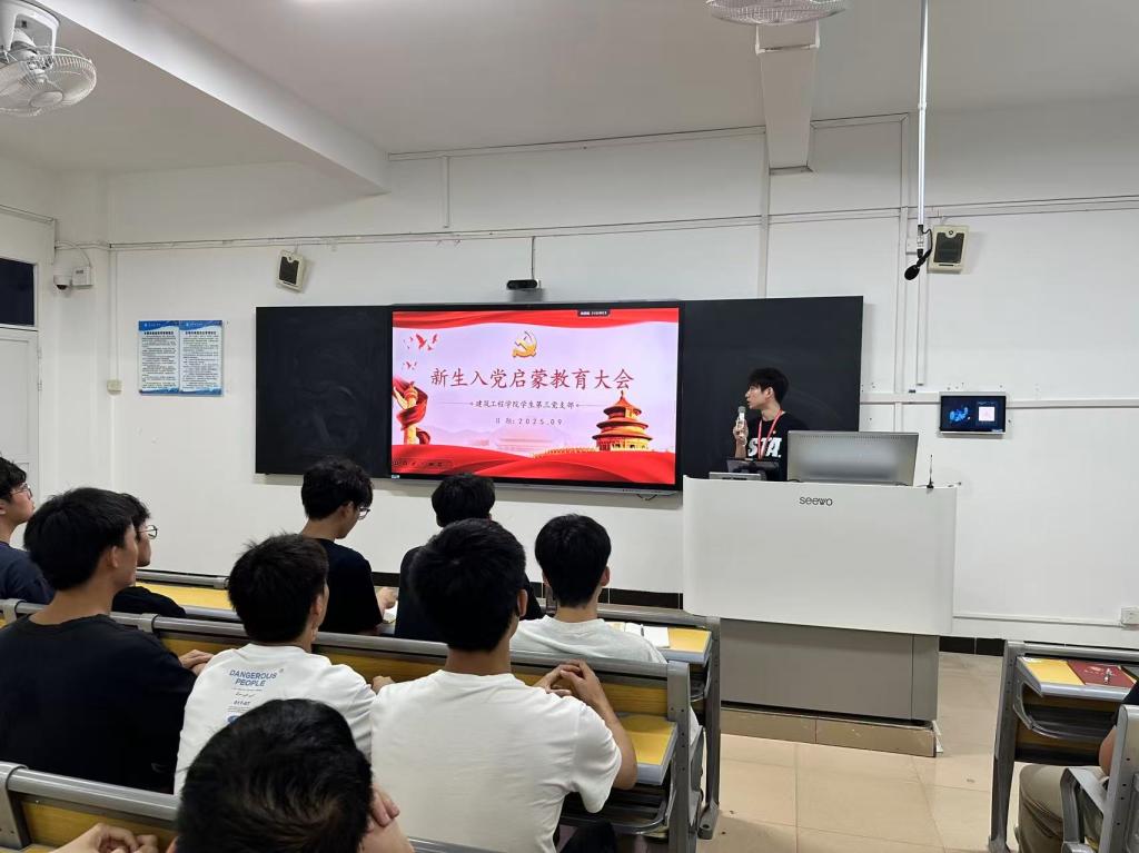 (通讯员:何志杰)为切实筑牢新生理想信念根基,引导新生端正入党动机。9月16日晚,建筑工程学院学生第三党支部在6栋302教室开展2025级专升本新生入党启蒙教育大会,本次会议由支部组织委员罗浩铭主持,党总支组织员姚章泽、25级专升本新生参加会议。