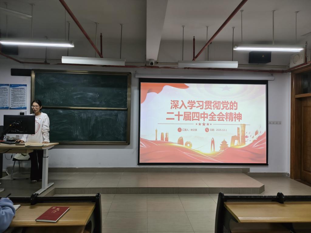 12月1日晚,为深入学习贯彻党的二十届四中全会精神,引导同志们将思想和行动统一到全会部署上来,切实筑牢理想信念、强化责任担当,我院学生第一党支部在13栋609召开深入学习贯彻党的二十届四中全会精神专题学习会议。参加本次会议的成员有支部全体党员、预备党员、发展对象、积极分子以及各班班级代表,林文琪同志主持会议。
