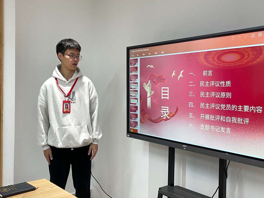 最后,学生第二党支部副书记罗嘉俊同志对本次会议进行了总结,提出以下要求:一是同志们要将本次会议中查摆出的问题与不足,转化为新学期的具体行动。针对自身存在的短板,制定明确的改进措施,切实做到即知即改、立行立改;二是加强理论学习,提升思想认识。同志们要主动利用学习资料和线上平台,及时了解时事动态,准确把握政策要求,通过交流分享、心得总结等方式,不断夯实思想基础;三是强化协作意识,增强支部活力。同志们在日常学习与工作中,要主动配合、相互支持,积极参与支部活动,共同应对各类挑战,不断提升党支部的凝聚力;四、鼓励同志们积极参与实践活动,充分发挥党员的示范作用,在服务他人、奉献集体的过程中,不断提升自身的综合能力。
