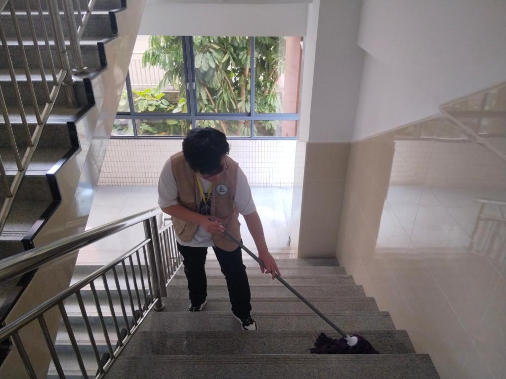 活动伊始,全体成员满怀热情地齐聚9栋教学楼旁的小广场,共同商议并落实任务安排。随后,同学们手持清洁工具,化身为教室的“守护者”,秉持“能吃苦、肯奋斗”的精神,对9栋教学楼展开全面清扫。大家按照预先划分的责任区域分工协作,以“螺丝钉”般的细致与“钉子精神”般的韧劲,一寸一寸还原教学空间的整洁本色。经过全体成员的辛勤劳动,各责任区域面貌焕然一新,变得整洁有序,共同为营造美好的学习环境贡献了力量。