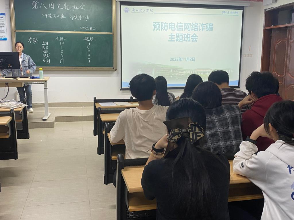 (通讯员:李湛)为了提升师生电信网络防诈意识,营造良好的防诈氛围,筑牢校园电信网络安全防线,建筑工程学院于11月2日晚开展“预防电信网络诈骗”主题班会。班会由各班辅导员与班干部主持,全体同学积极参加。