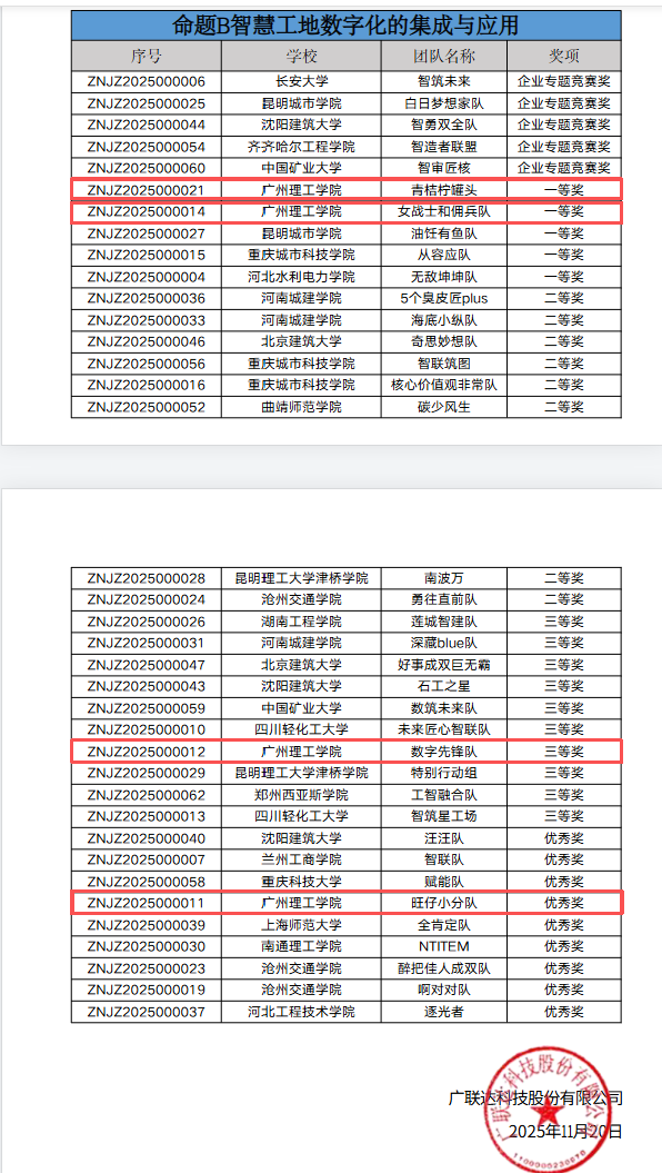 近日,第六届全国智慧城市与智能建造大学生创新创业竞赛—企业专题竞赛圆满落幕。大赛形式为全国线上全国总决赛,我校建筑工程学院代表队斩获一等奖两项、三等奖一项和优秀奖一项,彰显了学校在智能建造领域的创新实力与人才培养成效。