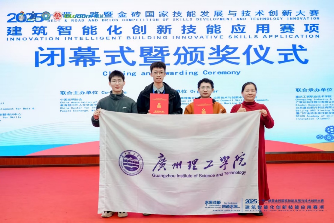 在2025一带一路暨金砖国家技能发展与技术创新大赛之建筑智能化创新技能应用机器人赛项全国总决赛中,我校建筑工程学院牵头组建的代表队表现亮眼,23造价1班卓楚浩、23土木1班许坤锴、23计科2班赖安达,三位同学组成的参赛团队从来自全国的112支参赛队伍中脱颖而出,斩获全国第三名、机器人赛项二等奖的优异成绩(机器人赛项一等奖仅设1个名额),广州理工学院获优秀组织奖,李棱雪副院长和戚蕊老师获优秀指导教师奖,全方位展现了学校在建筑智能化领域的技术实力、人才培养水平与赛事组织能力。