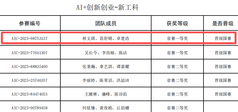 AI+创新创业-新工科算法创新赛获奖名单