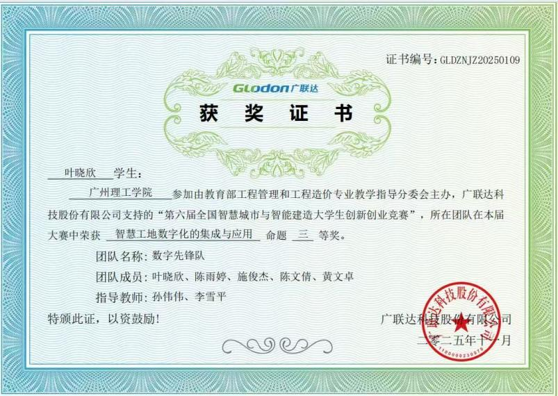 以赛促学、以赛促创,以赛赋能行业发展。此次获奖不仅是对参赛学子创新能力与实践水平的高度认可,更是学院深耕智能建造、智慧城市等前沿领域,推进“产教融合、科教融汇”的生动实践。未来,建筑工程学院将以此次赛事为契机,持续聚焦行业发展需求,深化创新创业教育改革,着力培养更多兼具工程素养与创新思维的高素质人才,为推动建筑业数字化转型与高质量发展贡献力量!