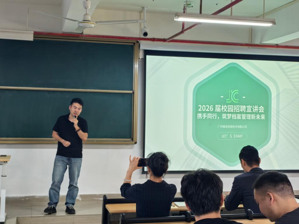 宣讲会上,陈经理围绕行业发展现状、企业文化价值及人才岗位招聘需求方向展开介绍,本次岗位招聘主要面向档案技术员、商务专员,同时介绍了企业人才培养体系与实习晋升通道。随后陈经理通过结合承接的电子档案项目案例,直观展示岗位工作内容与职业成长路径。互动环节中,学生们针对实习机会、岗位能力要求等问题踊跃提问,陈经理逐一细致解答,现场气氛热烈。