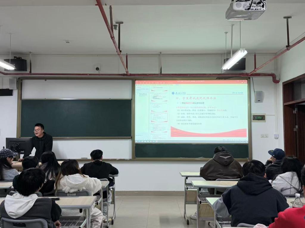 班会上,各班班长率先围绕诚信考试教育主题展开讲解。班长们结合日常学习场景,阐述了诚信应考的重要意义,呼吁同学们摒弃侥幸心理,以真实成绩检验学习成果,树立良好考风。随后,各班辅导员针对考试纪律进行再次强调。他们结合近年校园考试违纪案例,详细解读了学校考场规则,清晰告知学生违纪作弊的严重后果,进一步强化学生的规则意识。同时,辅导员们还为同学们分享了高效复习方法,提醒大家合理规划复习时间、调整备考心态,以扎实的知识储备和良好的精神状态迎接期末考试。