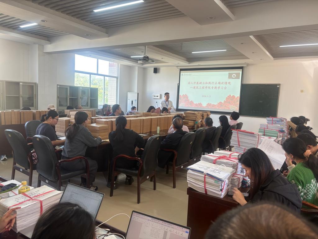 马冠华书记在会上总结了上周专家看课听课情况,要求持续强化课堂管理,督促学生严格执行交手机制度,营造良好课堂教学秩序。他带领全体教师集中学习树立和践行正确政绩观相关文件,强调要深刻把握“立党为公、为民造福、科学决策、真抓实干”的总要求,将正确政绩观融入教育教学全过程,以务实作风做好迎评各项工作。同时,马冠华书记再次强调专家进校后资料抽调的紧迫性,要求各岗位人员提前梳理资料、查漏补缺,确保资料调取及时、准确、完整。