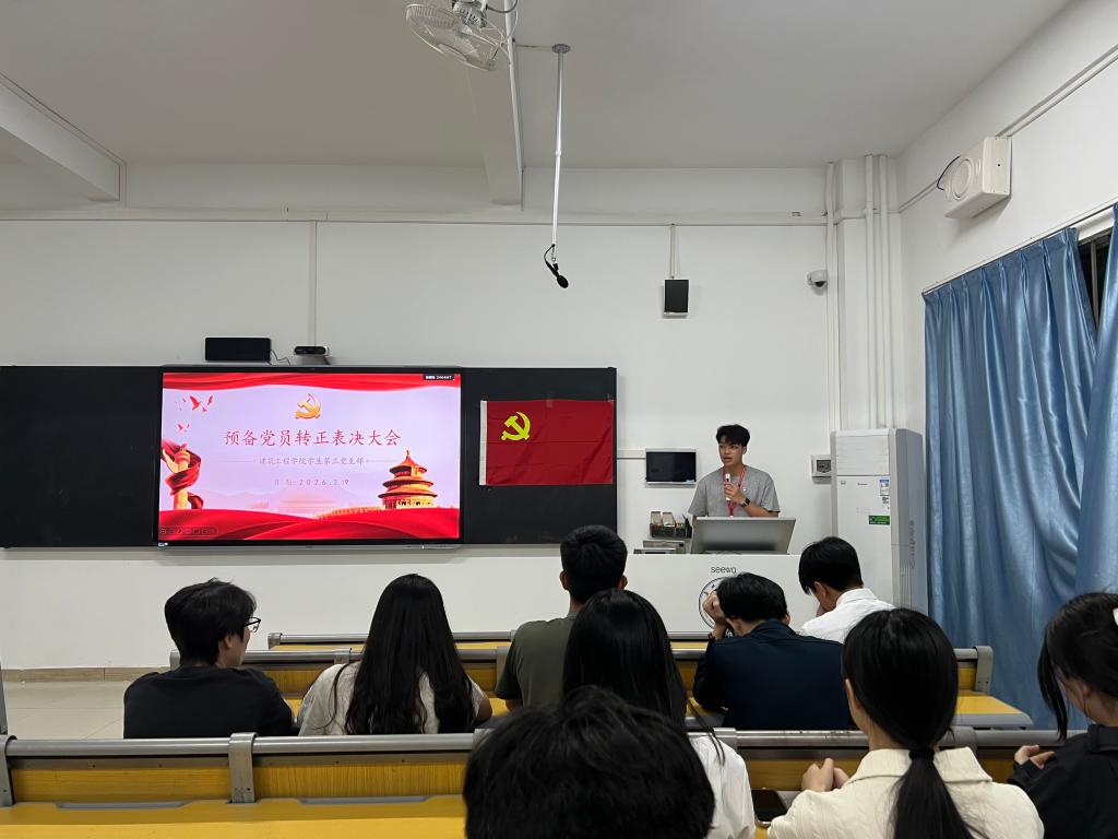 3月19日晚,建筑工程学院学生第三党支部在6栋102教室组织召开预备党员转正大会。会议由支部副书记曾龙辉同志主持,全体党员及预备党员参加。