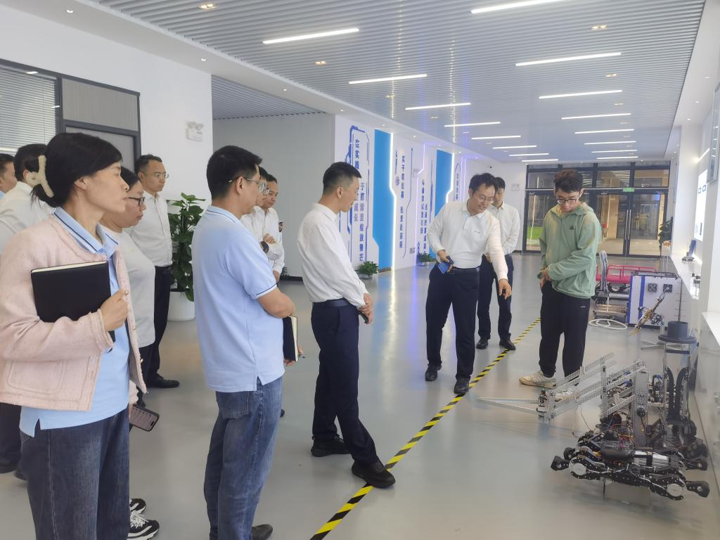 座谈会后,在学校领导的陪同下,蔡庆军董事长一行先后实地参观了学校智能建造实验室、人工智能实验室、无人机工作室、BIM实验室等教学科研场地。参观过程中,企业代表详细了解各场地的设备配置、科研研发方向、教学应用场景及成果转化情况,对学校先进的教学科研条件、扎实的人才培养工作和鲜明的工科办学特色给予高度评价。