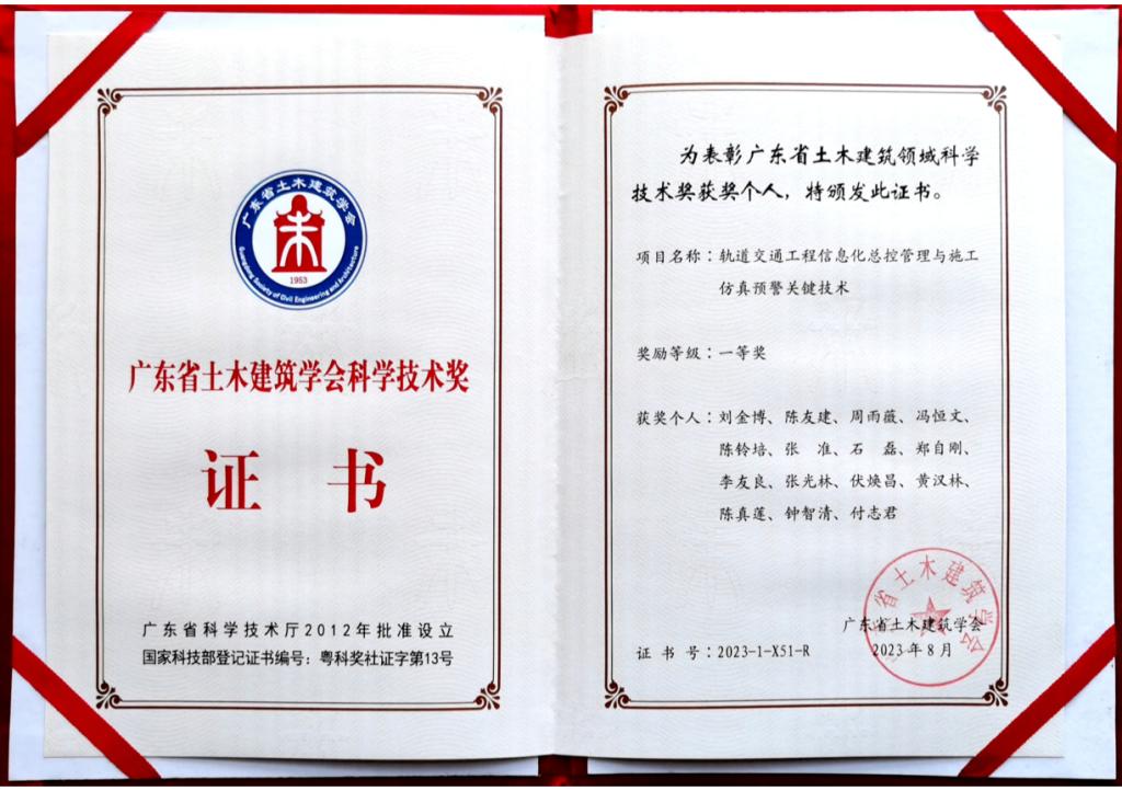 工作室成立以来,斩获了多项科研成果。完成国家重点研发项目子课题:基于BIM技术的自动扶梯可视化监控与预警方法研究;立项了多项广东省教育厅及广东省住房与城乡建设厅科技项目。科学技术成果《轨道交通工程信息化总控管理与施工仿真预警关键技术》被广东省土木建筑学会鉴定委员会评定为达到国际先进水平,并获得广东省土木建筑学会科学技术奖一等奖。所开发的高新技术产品中,有 3项在第 二十五届高交会上获得转让,其中“智慧建模与集成算量系统”获得优秀产品奖,“数据驱动智能设计软件”获2025年广东省名优高新技术产品。获授权5项发明专利,包括“一种龙骨系统的自动化布置方法、装置、设备及介质”、“一种智能起吊传输运装机器人”等,申请并获得了“建筑巡航机器人动态可视化仿真预警系统”、“巡航机器人仿真预警平台”、“建筑缺陷分析平台”等软件著作权。